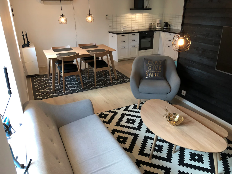 This flat is perfect for two, with lots of light and a super thoughtfully decorated and equipped kitchen and bathroom.The comfy furnishings are a mix of Scandi and mid-century, with lots of lovely thick blankets and cushions to relax in.