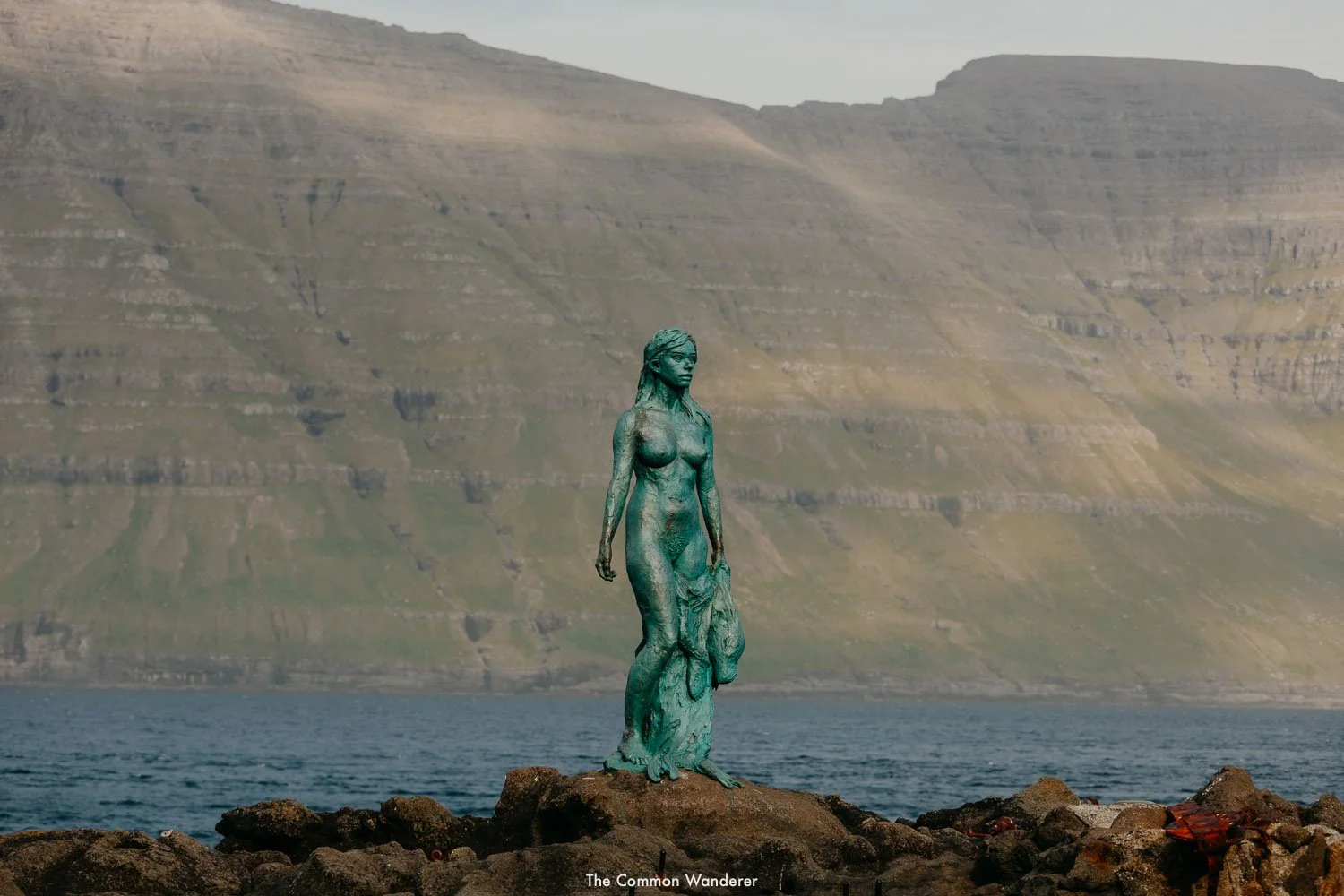 But there’s also another reason Mikladalur is well-known, especially amongst visitors, and that’s for the beautiful statue of Kópakonan, the Seal Woman (also known as a Selkie, the Faroe Islands version of a mermaid), perched above a waterfall by the village shore.